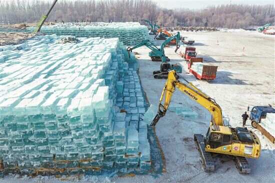 哈尔滨冰雪大世界每年都会在采冰季挑选出一批冰块储存,采用传统储冰方式与现代多层保温技术相结合的方式,让冰块储存近一年时间不融化,供下一届冰雪大世界建设时使用。