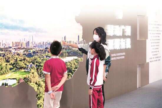 ■学生们在广州青少年科技馆参观“碳达峰、碳中和”主题科普展览。