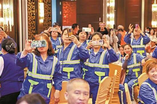 “太客气了。有一些不相识的宾客到我们的饭桌上祝酒,不仅祝福我们,还致敬我们平时的劳动,我心里感到很温暖。”负责天河区前进街路面保洁的简大姐告诉新快报记者。