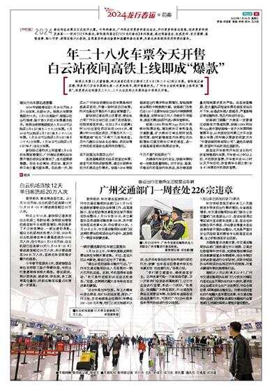 2024春运将在本周五正式拉开大幕。今年的春运,广州将启用更多的客运站点,开行更多的客运线路,迎来更多的到发旅客……针对2024年春运,新快报将推出《2024龙行春运》系列报道,通过现场直击、权威发布、官方预测、温暖故事、贴心守护、表情定格六大板块,呈现真实的春运场景和温馨的春运故事,为春运旅客提供实用的资讯服务。