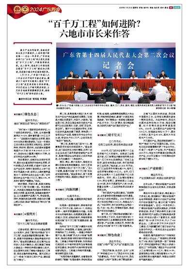 1月24日,广东省十四届人大二次会议召开地市专场记者会,邀请六个地市市长就深入推进“百千万工程”谈发展思路与具体举措。市长们在会上不避问题谈短板,立足各自地域资源禀赋谋发展,描绘“百千万工程”新的进阶之路。