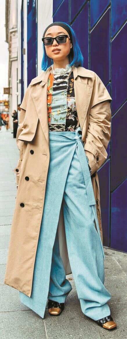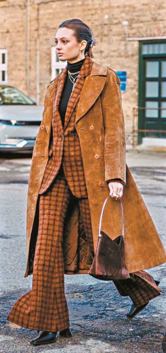 面料的肌理上选细不选粗,像绞花毛衣的强肌理粗针就容易显壮,适合身形瘦削的时髦精。颜色上带灰调的莫兰迪色系会比带荧光调的多巴胺色系更容易显出好气色,也可加入一点米白色衬衫或毛衣来平衡色彩,因为白色相当于反光板,能提亮面部,这样一些不太敢尝试的色彩也都可以尝试玩一玩。