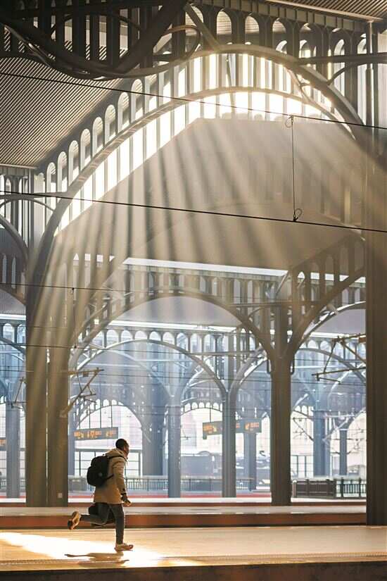 ■1月26日,春运首日,旅客在哈尔滨站跑步赶车。新华社发