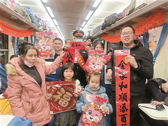 “今年我们厂子放假早,想着早点回家看娃儿,乘务员送的龙公仔,正好可以带回去送给娃儿当新年礼物。”在广州务工7年的周先生笑着说道。据了解,周先生的家乡在四川达州,他已经快两年没有回家过年了,今年工厂效益好,打算回家陪女儿过个年。