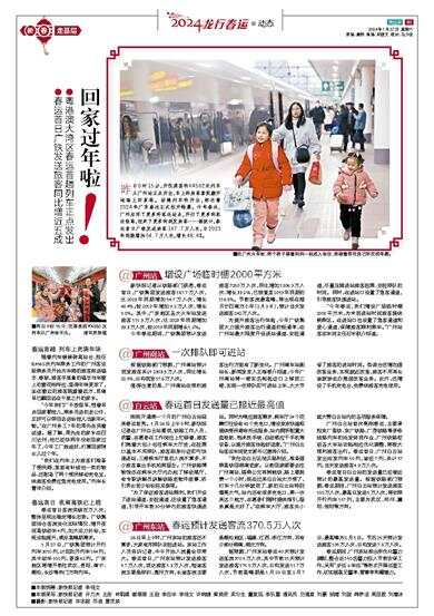新快报记者从铁路部门获悉,春运首日,广铁集团发送旅客167.7万人次,比2023年同期增加54.7万人次,增长48.4%;较2019年增加9.2万人次,增长5.8%。其中,广东地区各大火车站发送旅客111.3万人次,比2023年同期增加33.3万人次,较2019年同期增长1.2%。
