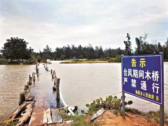 ■台风天被水浸没,木栈桥就不能使用了。