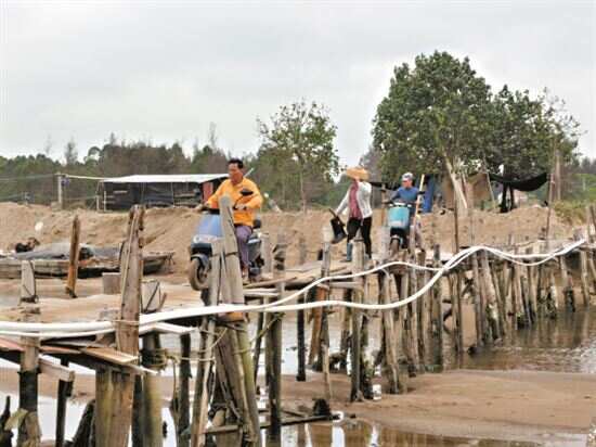 新快报记者从驻角尾乡工作队获悉,“南沙桥”建设前,连接两岸的是一座桥面宽度不足1米、仅容许行人及非机动车通行的简陋木栈桥。20世纪80年代,曾宅寮村、定村仔村老一辈村干部先后发动周边村民捐款捐物、出工出力,用竹竿、木头一钉一铆搭设起一座木栈桥,数十年间每逢开渔季节,附近10个自然村、数以千计的渔民经此赴海上捕捞。嫁到曾宅寮村20多年的李林大姐告诉新快报记者,以前桥面窄,凹凸不平,开摩托车很难过去,雨天还有人滑倒摔伤过,而且刮台风和涨潮时海水漫过桥面,就过不去了。