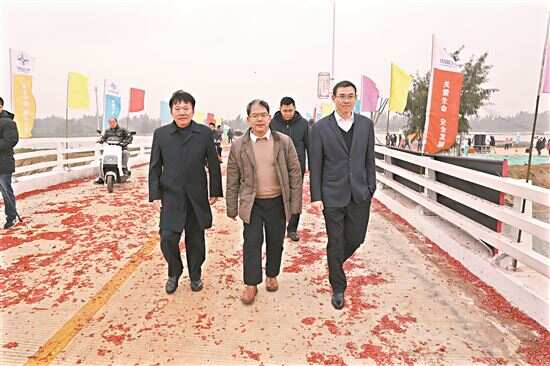 “因为隔着几十米宽的北洋港沟,以前村民们出海打鱼和养殖,最初要靠划船过去,后来村民修了木桥也不顶用,现在这座桥通了,连大汽车都能通过了,还配套修了公路,变化太大了,这是党和政府顺应民心民意,为民办实事办好事的一次具体行动体现,群众无不拍手点赞。”在现场,一位参加仪式的下寮仔村村干部骄傲地说。