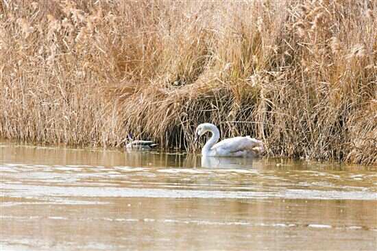 ■保护区内的疣鼻天鹅,从体貌特征来看,该鸟为亚成体鸟。