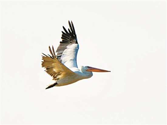 ■崇明东滩自然保护区内的卷羽鹈鹕。