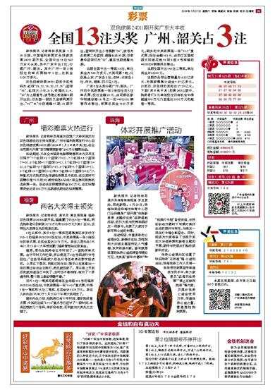 新快报讯 记者陆妍思报道 1月25日晚,中国福利彩票双色球游戏第24011期开奖,全国中出13注560万余元头奖,其中广东中出3注,分落广州、韶关。其中广州一张2倍投注的单式票独中2注,总奖金1120万多元。