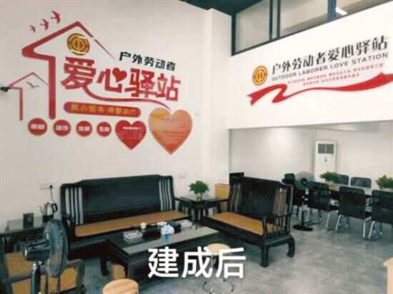 2023年初驿站正式启用,并同步举办“党建共建点”启用和数字乡村共建示范点揭牌仪式。该爱心驿站为辖区基层群众、园区产业工人、户外劳动者解决饮水难、如厕难、吃饭难等实际问题,打通了工会服务户外劳动者的“最后一公里”问题。