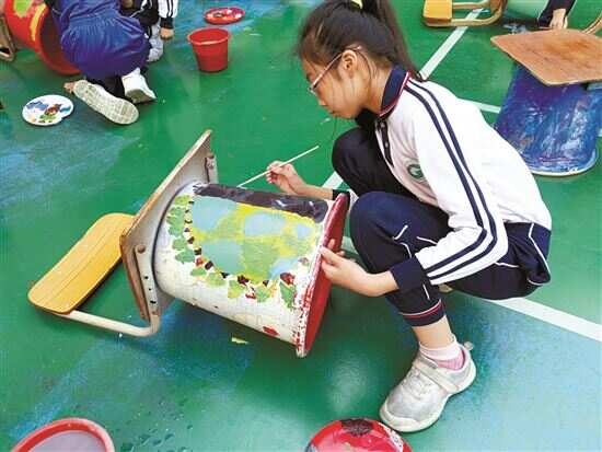 在快乐的涂鸦行动中融入学生的感情和意志,融入了低碳教育,化导人心。当人们再次坐上去时,也感受到快乐,寻找到小学时光的美好记忆。
