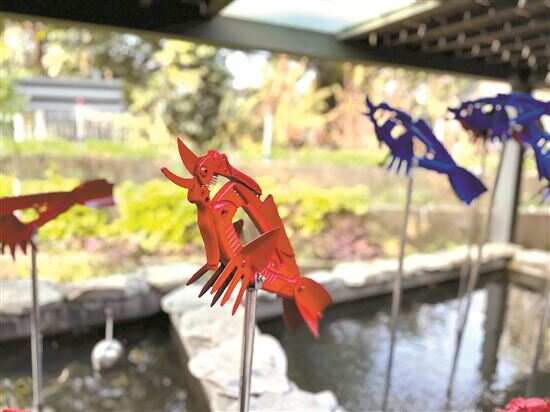 作品《鱼跃龙门》则构思别出心裁,利用中山庆琏金属制品生产的园林工具拼接而成,令连接人与自然的园林工具更为绿色可持续。“独具匠心的花园剪刀等以艺术的方式呈现出极富动感的鱼跃龙门吉祥场景,寓意我国低碳之力推动产业高质量跃升,引领我们迈向更加广阔美好的未来。”