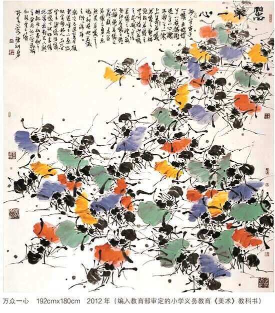 ■陈训勇作品《万众一心》编入教育部审定的小学义务教育《美术》教科书。