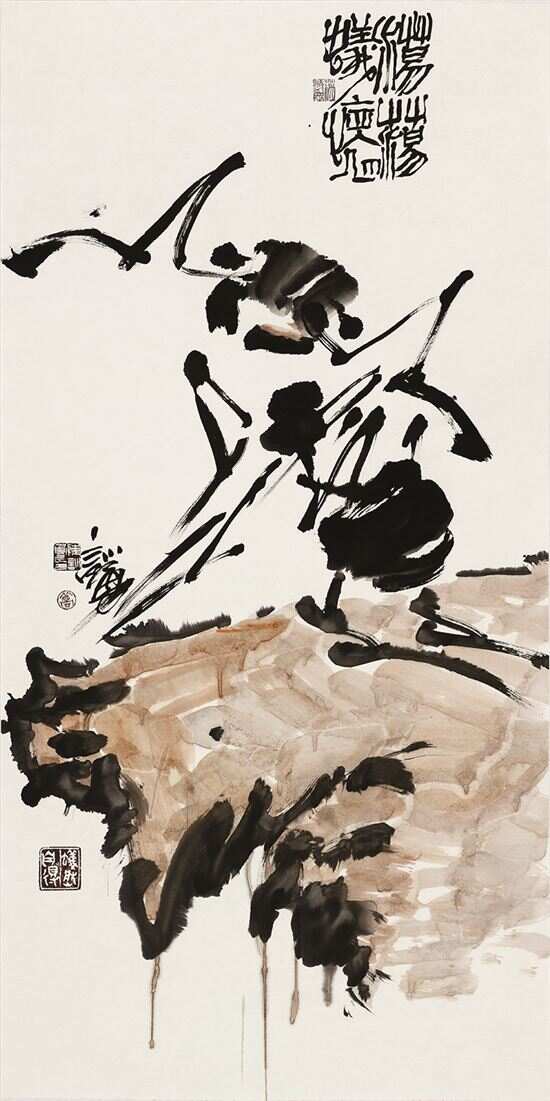 陈训勇笔下的这些小小的黑色生灵充满生趣,画家将笔墨、空灵、气韵等中国画独有的特点汇集在一起,营造一种新鲜、物我交融的意境。