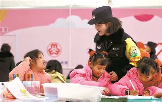■母婴候车室,工作人员为候车的小朋友布置了绘画室,并跟小朋友们一起欢乐互动。