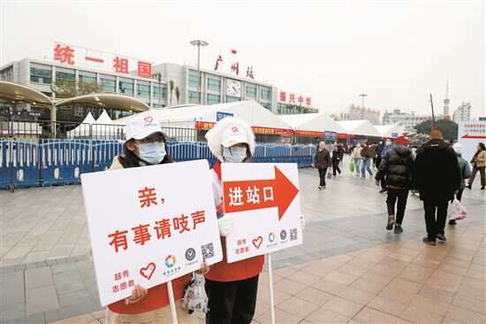 在广州各大火车站的不同岗位上,活跃着众多志愿者和工作人员。他们或是负责安保,或是为旅客进行指引,或是在母婴候车室照顾小朋友,为旅客送上热心、耐心、贴心的服务。