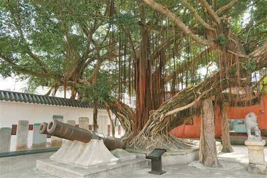 当年在此榕树下,郑成功慷慨演讲,招揽壮士,应者云集。之后,他率领水师顺利东征台湾。1647年2月,侵台荷兰总督揆一投降,被占38年的领土终于收归祖国。