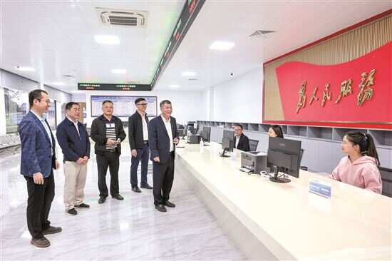 ■龙门镇党委书记陈孝了解一站式便民服务中心服务群众的情况。