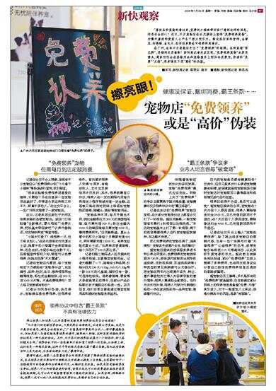 在广州,也有不少宠物店打出了“免费领养”的招牌。品种宠物“零元购”,是福利还是套路?新快报记者走访发现,“免费领养宠物”本质是噱头,商家往往会在宠物用品和宠物服务上附加各类费用,所谓的“免费”“无偿”,很多情况下是“高价”的伪装。