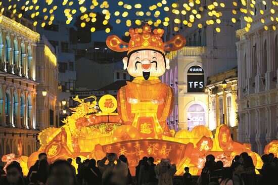 1月29日,市民在澳门议事亭前地观赏春节灯饰。春节临近,澳门特区市政署以“龙腾飞舞庆丰年 喜迎廿五展新篇”为主题,在澳门各区布置贺年灯饰,灯饰日前已全面点亮。新华社发
