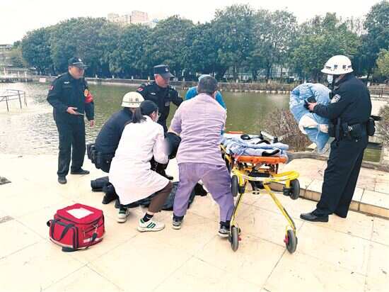 到达现场后,一组警力会同公园工作人员划船救人,另一组警力有序疏散围观群众,为救护车开路,争取宝贵救援时间。当日气温骤降,湖水冰冷,多人合力将女子护送上岸后送医治疗。