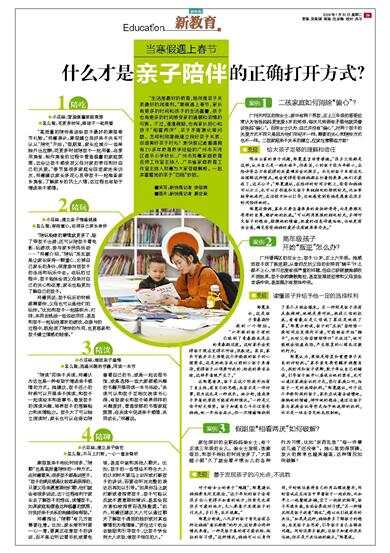 “生活是最好的教育,陪伴是亲子关系最好的润滑剂。”寒假遇上春节,家长有更多的时间和孩子的生活重叠,孩子也有更多的时间感受家的温暖和亲情的可贵。不过,漫漫假期,也有家长担心和孩子“相看两厌”、亲子矛盾激化等问题。怎样利用寒假建立良好亲子关系、创造美好亲子时光?新快报记者邀请拥有20多年教育教学经验的广州市天河区昌乐小学校长、广州市郑蕙家庭教育名师工作室主持人、广东省家庭教育工作室主持人郑蕙为大家答疑解惑。一起来看看她的亲子“四陪”妙招。