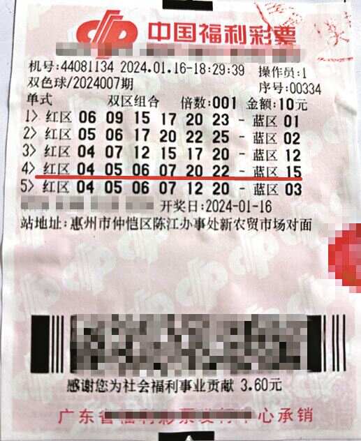 1月16日晚,中国福利彩票双色球第2024007期开奖,当期全国共中出一等奖5注,广东省中得的1注头奖,花落惠州市仲恺区陈江办事处新农贸市场44081134福彩销售站点,中奖彩票是一张10元5注单式自选票。这是惠州彩民今年二度中得双色球头奖。在1月7日晚,中国福利彩票双色球游戏进行第24003期开奖。当期全国共中出12注674万余元一等奖,其中广东中出2注,均落户惠州,且由一张彩票独中,中奖彩票是一张2倍投注的2注单式票,投注金额8元,由惠州市惠城区小金口广仍路大三组16号的44080059销售网点售出,单票总奖金达到1349万多元。进入新年,惠州已中出3注双色球头奖,是当之无愧的福彩大奖旺地。