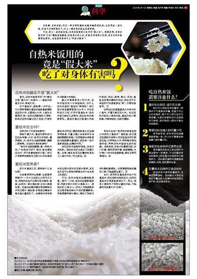 有的自热米饭配料表里,还有玉米淀粉。“添加的目的也是为了改善口感。此前,确实有用马铃薯淀粉来加工人造大米的。”沈立荣说。②