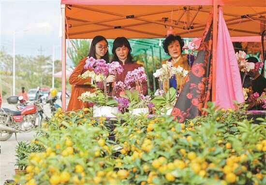 埔涵村是当地的特色花卉村,每年都是湘桥区迎春花市的主场地,但往年都是群众自发组织在网红桥下举办。“那里环境比较复杂,特别是地面泥泞,遇到下雨天就更麻烦,没有路灯,晚上我们得自己准备照明设备。”花市摊主蔡小姐笑着告诉新快报记者,今年政府统一规划,路面是水泥地,还有路灯照明,花市开到晚上十一二点也不怕,“其实晚上人更多,大家下班了吃完饭,正好过来逛花市。”