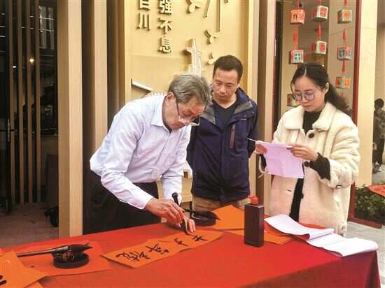活动中,现场设置“党群服务超市”,开展平安创建、防诈骗、防灾减灾等宣传,吸引了许多群众参与。据工作队介绍,此次活动以笔墨承载祝福,将辞旧迎新、接福纳祥的美好祝福传递到千家万户,为即将到来的春节增添节日氛围。接下来,工作队将依托党群服务中心,联合莲华镇政府持续开展群众喜闻乐见的文化活动,不断满足群众日益增长的精神文化需求。