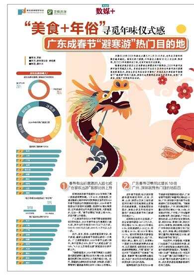 随着经济稳步复苏以及消费者出游需求的不断释放,2024年春节旅游市场变得越发火热。多家在线旅行平台近日发布的龙年春节旅行预测报告数据显示,美食众多且年俗活动丰富的广东地区成为游客春节假期南下“避寒游”的热门选择,游客们也更期待在旅途中寻觅年味,品尝广东美食,体验广东传统年俗活动。