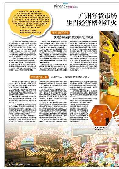 岁末时节,广州白马服装市场、中港皮具城等流花、三元里一带的专业市场都会开展面向零售客户的年终大促活动,龙图案的服装、皮包尤其受欢迎。一位挑选了一件中式龙刺绣外套作为过年新衣的女士对新快报记者开玩笑说,“生肖服饰通常只穿一年,不是商场大牌买不起,而是批发市场更具性价比!”