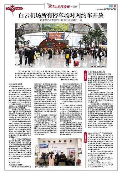 白云机场股份公司公管分公司规划发展部经理陶然表示,今年春运白云机场客流预计呈现“分散出行、集中返程”的特点。随着春节临近,白云机场交通车流日渐繁忙起来,机场高速机场方向及白云机场主干道时有出现缓行情况,“目前情况来看,机场高速没有出现集中拥堵的情况,但春节过后的初七、初八,预计会有拥堵情况,请广大旅客留意提前做好出行规划。”