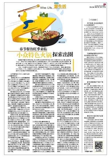 随着春节餐饮旺季的来临,各大品牌正在加紧布局市场,而步入负增长的大众火锅,也在通过“小众”、“特色”的方式探索出圈方向,如海底捞在重庆、万州十余家海底捞上线全新区域菜单,锅底可定制“千人千味”;餐饮巨头九毛九集团在广州推出了一家名为“山的山外面”的贵州酸汤火锅店;就连电商平台叮咚买菜也加入冬季“火锅大战”,200万个火锅锅底将被端上餐桌……