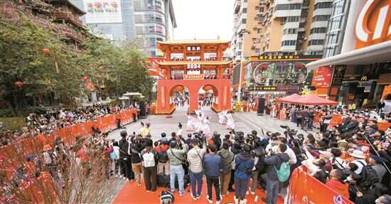 “三、二、一!”锣响定音,欢呼四起。同日,2024年荔湾区传统迎春花市也正式敲锣开市,市民游客纷纷涌入花街,一片欢腾中,广府年味不断升腾,行花街、备年货、绘广彩、写春联、送福字……西关传统新年的仪式感和喜庆感瞬间“拉满”。