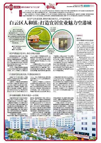 优越的营商环境不仅是经济发展的基础,也是人们安居乐业的基础。今年,人和镇研究制定《广州市白云区人和镇中心镇暨美丽圩镇建设工作方案和实施方案》,全面实施中心镇及美丽圩镇建设,推动全镇实现区域协调高质量发展。同时,该镇持续优化道路交通网络建设,完成乡镇入口通道路面修复工程、空港大道综合提升工程和空港车辆段主体工程建设等,持续推进城镇面貌焕发新颜。