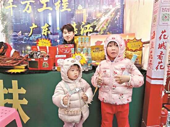 “小朋友,尝尝这个海味鸡仔饼。”在工作队负责人的盛情邀请下,一位尝过海味鸡仔饼的小朋友点赞:“非常好吃!”花市上,来自湛江的美食,醒狮、石狗和漂亮的金沙湾海景,更为迎春花市增添了湛江元素,受到市民游客的欢迎。
