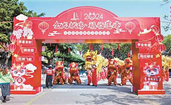 喜气洋洋迎新岁,红火热闹满园春。2月10日至17日,岭南印象园举办“龙腾盛世·福满岭南”春节庙会。瑞兽开年,龙狮虎跃,大龙精彩亮相,大年初二下午,50名舞者齐舞动百米长龙助兴,还有祝福满溢财神走街串巷惊喜互动。