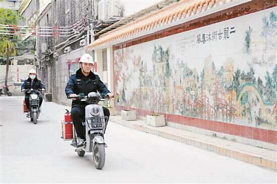 ■龙凤街道应急救援站的工作人员在骑车巡逻。