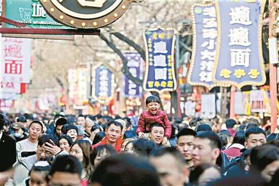 ■2月13日,游客在西安市美食文化街区回民街游览。新华社发