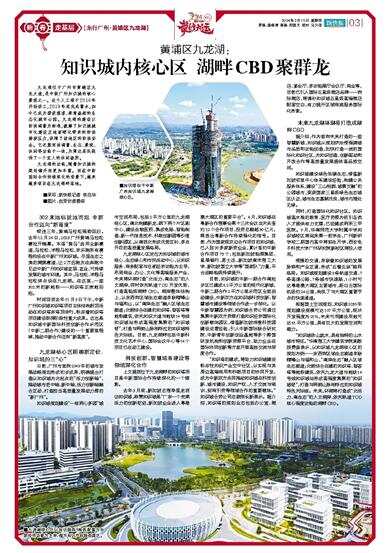 九龙湖核心区定位为知识城的城市核心、生态绿心和市民活动中心,以知识服务、商务配套与总部经济功能为主导,布局商业、办公、文化等高端服务产业,未来将环湖打造“北活力、南生态”的人文湖岸,同时依托轨道TOD开发优势,打造高能级湖畔CBD。湖岸整体结构上,以东西向区域生态廊道串联帽峰山与福和山,以“南岸生态”融入区域生态廊道;北侧结合在建的知识塔、智荟塔等地标建筑,依托知识大道与地铁14号线知识城站形成高强度集聚的“知识城脊”,打造与两侧山脉相呼应的知识城特色天际线。目前,九龙湖畔包括中新科技文化艺术中心、国际会议中心等14个项目已在动工建设。