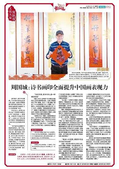 春节前夕,西泠印社理事,广州市美术家协会名誉主席,国家一级美术师周国城与新快报记者约在广东省南方画院美术馆接受“文化大家贺新春”专访。