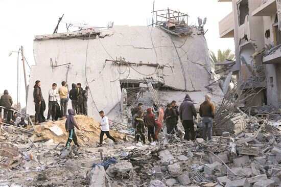 ■2月16日在加沙地带南部城市拉法拍摄的以军空袭后的废墟。新华社发