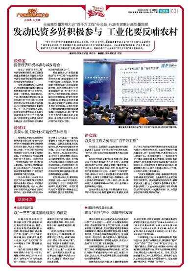 会前,顾益康接受采访时表示,他观察到越来越多民营企业和资本参与到“百千万工程”中,这是一个新亮点。顾益康认为,广东、浙江都是民营经济大省,在浙江进行的“千万工程”中,民营经济和社会资本在参与城乡融合、乡村发展方面发挥了重要作用。下一步,广东要深入研究,如何发动民营资本以及各地乡贤积极参与“百千万工程”建设。“很多民营企业都是当年的乡镇企业,他们改制后成为最有活力的市场主体之一”。
