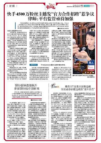 那么,“祁天道”宣称的“官方合作”,真的是快手公司在招聘“普工”吗?2月20日,新快报记者以消费者身份致电快手官方服务热线求证,客服人员回复称,平台为企业自招或人力资源中介提供了招聘功能,经过相关资质检测后才能使用,但“没有跟官方合作这个说法”。