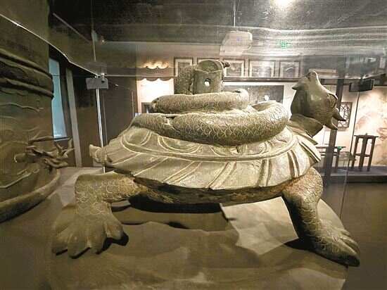 这件一级文物,原件已调拨中国国家博物馆,广州的这一套是复制品,而上面的玄武铜雕,却是原件,机缘巧合之下,最终留在了广州。记者从当天该馆的讲解中获悉,目前,这件铜壶滴漏也正在国博展出,但玄武铜雕是仅在广州可见。