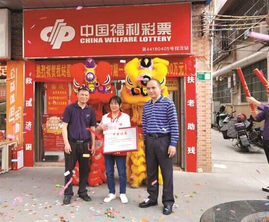 随后,清远市福彩中心到44180405销售网点颁发中奖证书,现场舞狮庆贺十分喜庆。热闹的场面吸引不少附近的街坊围观,大家纷纷上前道喜,顺便买几注彩票沾沾喜气。