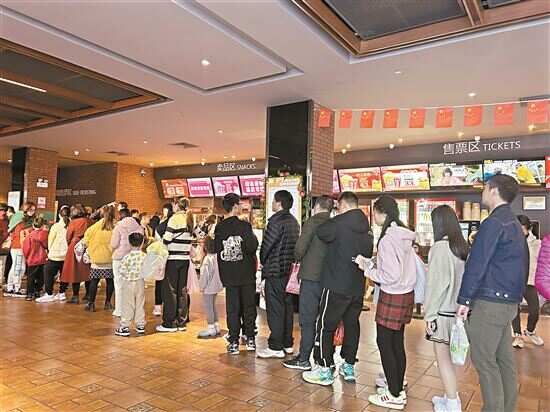 ■今年贺岁档异常火爆,广州某影院检票排长龙。